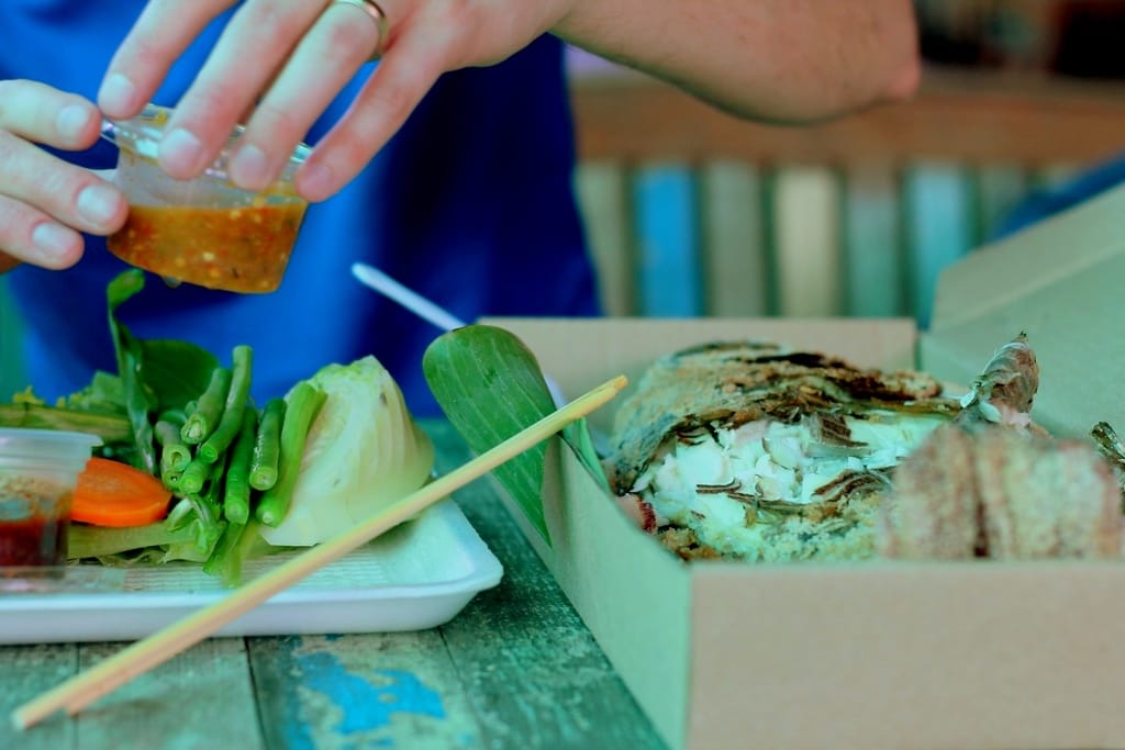 Wrapped in a banana leaf the sticky rice encases a red bean filling which mixes well with the coconut flavour from the rice, simply delicious. We even learned how to make it at our authentic Thai cooking class in Chiang Rai.