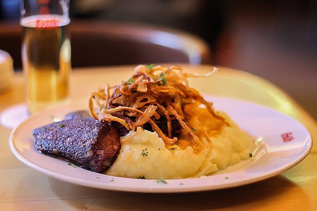 We can recommend the potato mash with applesauce. Topped with fried shallots it's our personal favourite. If you're a vegetarian, you may want to skip the black pudding, though.