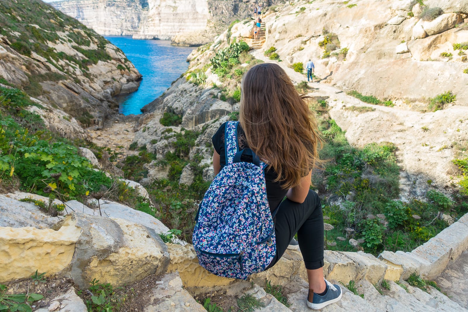 The coralline limestone path leading to the shore is rough and can get sharp in places. Therefore, you might want to wear something a bit more comfortable than flip-flops. Especially if you are thinking of exploring the spectacular cliffs of Gozo further up the rocks.
